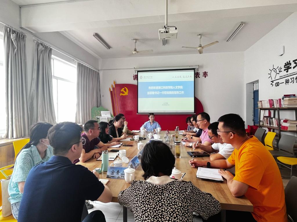 6月6日赴浙江财经大学人文与传播学院考察调研会上,浙江财经大学人文与传播学院党委书记高燕、副书记袁慧兰及办公室、学工办等部门负责人参加交流,对学院基本情况、党建品牌建设、样板党支部的培育、科研发展、学生思政工作等方面进行了介绍。双方围绕培育传统文化特色党建品牌、研究生培养、学生心理安全、就业、“双创”大赛等工作中的堵点难点进行了交流。会后,调研团一行实地考察了学院党员之家、心理辅导站、问津书院等场地。