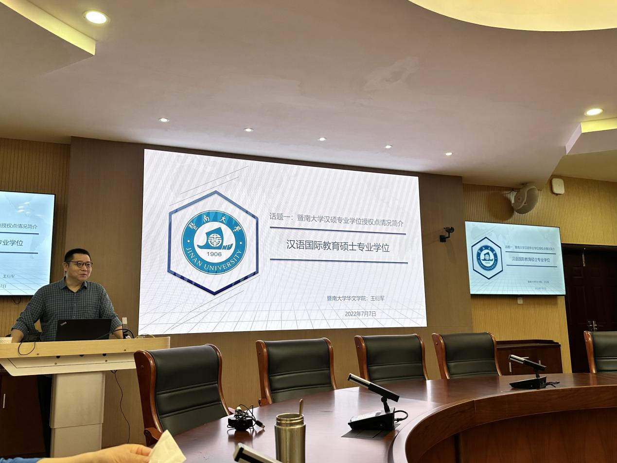 调研会上大家就汉硕专业学位授权点的发展、国际中文教育专业博士学位授权点培育申报、国际中文教育的发展现状和未来趋势、国际中文教育领域的科学研究和人才培养等问题向王教授进行请教。作为暨南大学国际中文教育专业的负责人,王教授对国际中文教育专业建设既有纵览全局的宏观理念,又有具体扎实的微观考察,他的观点得到与会老师的充分认同,他分享的学科发展新动向让大家受益匪浅。