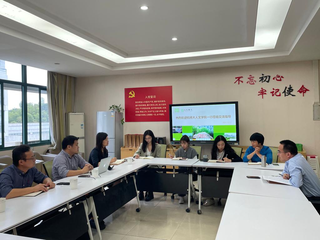 2021年10月12日,杭州师范大学人文学院副院长刘正平及副院长林航带队来我院交流。我院副书记郭峰及副院长胡云晚等接待杭师大一行,并召开汉语国际教育专业建设交流会。