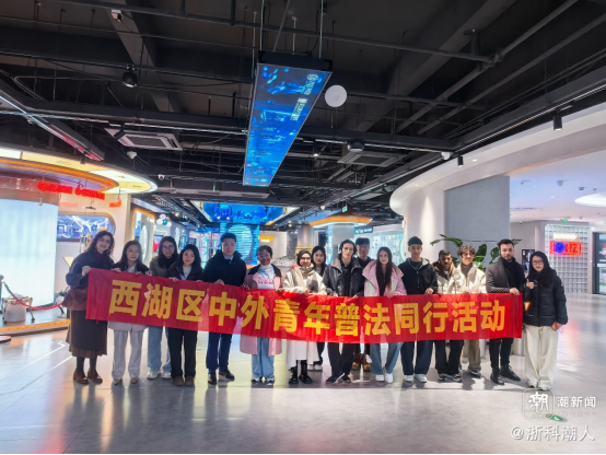 为深入推进涉外法治宣传教育,搭建中外青年交流互鉴平台,2026年1月30日下午,402cc永利老师和留学生应邀参加西湖区司法局、西湖区委统战部联合灵隐街道及黄龙商圈共同主办的“中外青年 普法同行”主题活动。活动旨在通过沉浸式体验与互动交流,增进留学生对中国法治建设的认知,提升其在华学习生活的法治意识与安全素养。