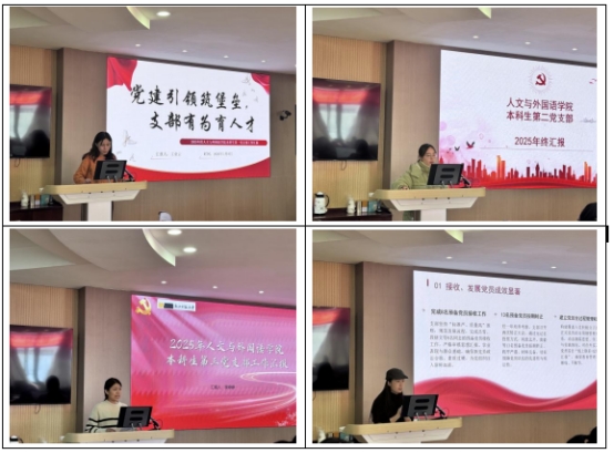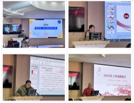本次述职评议以口头报告和书面述职相结合的方式进行。会上,共有11个党支部完成2025年度工作述职,涵盖所有教师与学生支部。述职普遍围绕思想建设、组织建设、特色品牌、存在问题与未来计划等方面展开。