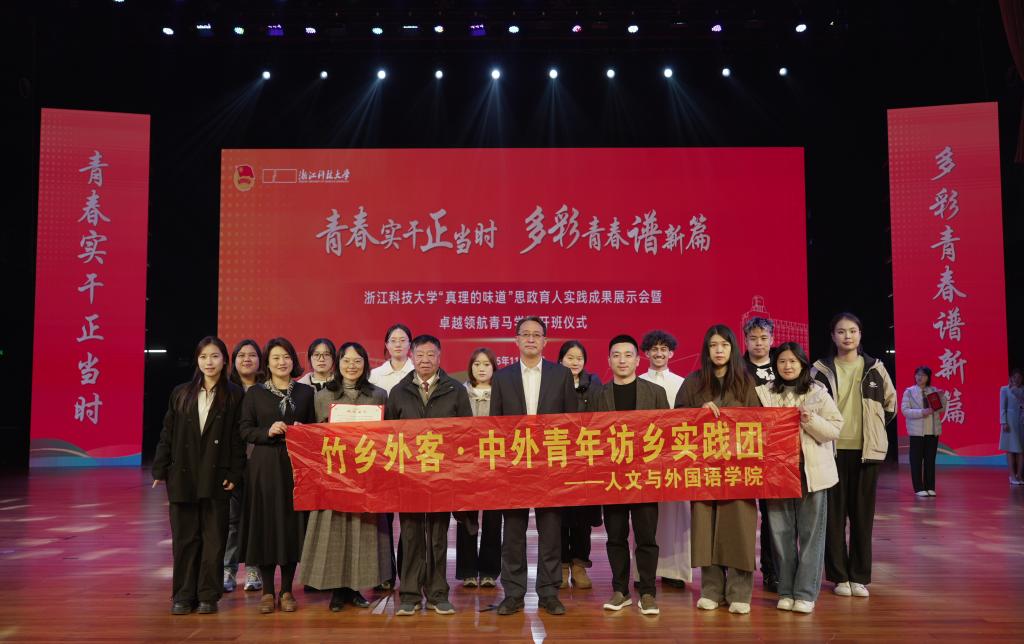 “新坝π青年,潮涌向未来” 中外暑期社会实践团由38名中外学子组成,程永艳教授指导,叶恬烁任团长。2025 年 7-8 月,团队赴杭州萧山区义桥镇新坝村开展为期 30 天的文化赋能实践。团队深耕文化溯源、国际传播、乡村共富三大方向,开展研学地标之旅、夏日文化课堂、村 BA、越剧中外交流等多元活动,推动文化传承与国际互鉴。累计拍摄 1500G 素材,获 328 篇媒体报道,全网浏览量超 140 万,获评潮新闻暑期社会实践优秀案例。其廉洁教育案例获省教育厅推荐,获义桥镇政府表彰,为乡村振兴注入青春活力。