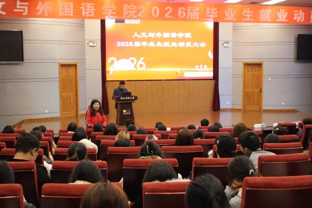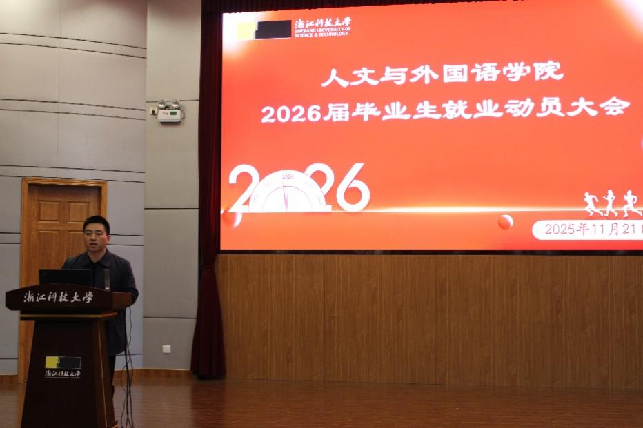 为助力2026届毕业生顺利开启职业生涯新篇章,11月21日,402永利集团在图西报告厅举行了毕业生就业动员大会,学院执行院长樊燕龙、党委书记邵莉敏、外语系系主任祝敏及2026届班主任、辅导员和全体2026届毕业生齐聚一堂,学院邀请了杭州市就业管理服务中心青年就业处处长赵逸斌、杭州市大学生创业导师俞广良进行就业指导。会议由学院党委副书记王铁军主持。