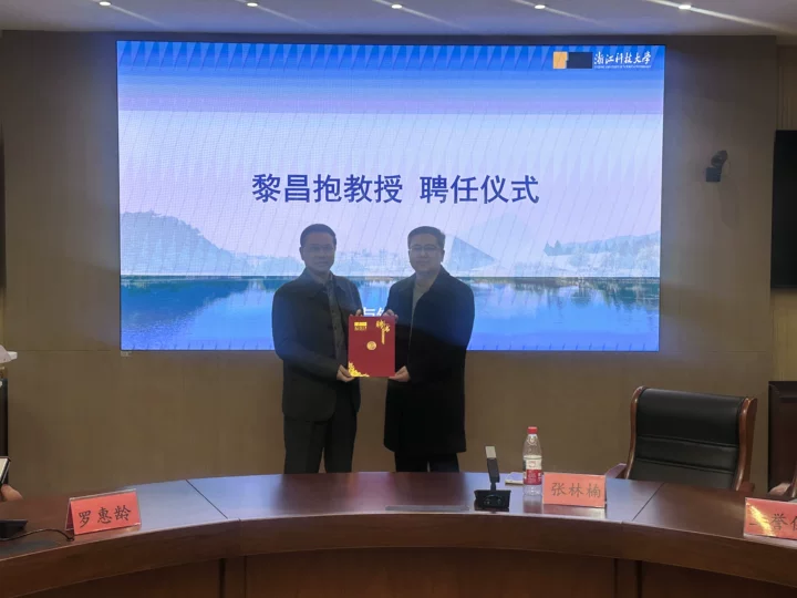 随后,会议举行了黎昌抱教授续聘仪式。执行院长樊燕龙向黎昌抱教授颁发了续聘证书,并对黎教授长期以来为学院学科发展、人才培养和科研提升所作出的突出贡献表示衷心感谢,期待黎教授在未来继续助力学院学术科研工作迈上新台阶。