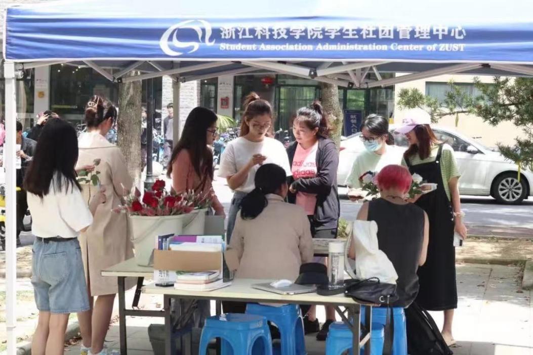 本次活动以旧书易鲜花,同学们将旧书带来现场,由工作人员进行登记之后换取鲜花,书香与花香交融,活动现场气氛浓烈;同时,现场设有集赞换钥匙扣的小活动,现场摊位前的同学络绎不绝,此次活动大家共同参与其中,并得以体会资源共享带给我们的乐趣。
