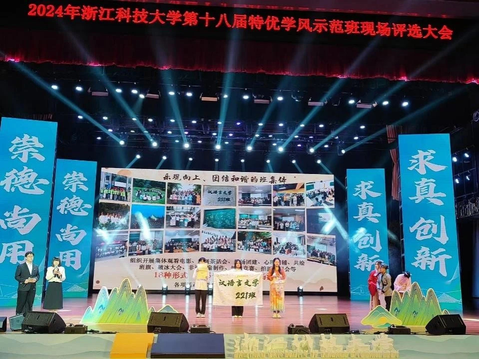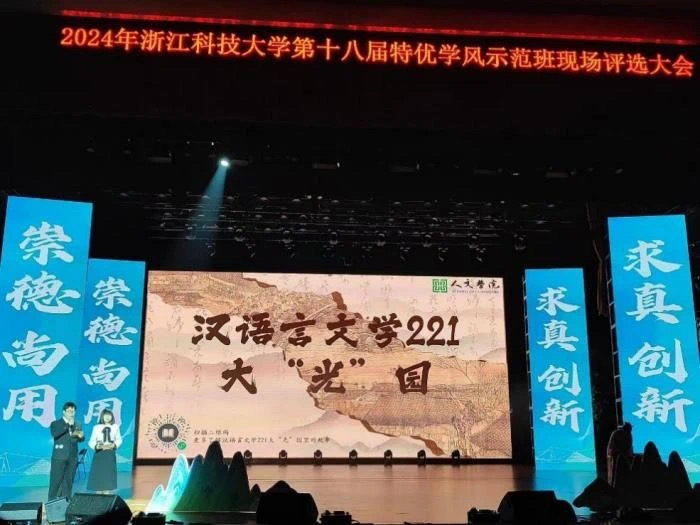 汉语言文学221由38名同学汇于浙科、聚于人文而成,院校组织任职占比80%,社团任职人员占比60%。班级同学荣获省政府奖学金、创新创业奖学金等,各类奖学金覆盖率100%。以“一个中心,五个基本点”模式建构“四0班级”,达成0投诉、0违纪、0诈骗、0安全事故。