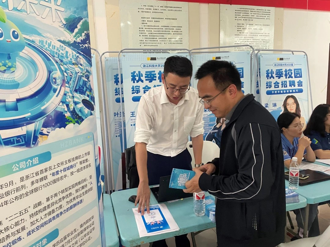 通过前期与用人单位的多次联络及精心筹备,杭州银行股份有限公司、美的集团股份有限公司、杭州学正易研教育科技有限公司等24家用人单位入驻招聘会现场,覆盖金融贸易、市场营销、教育培训等多个领域,提供90+岗位,为毕业生提供了海量优质的就业选择。