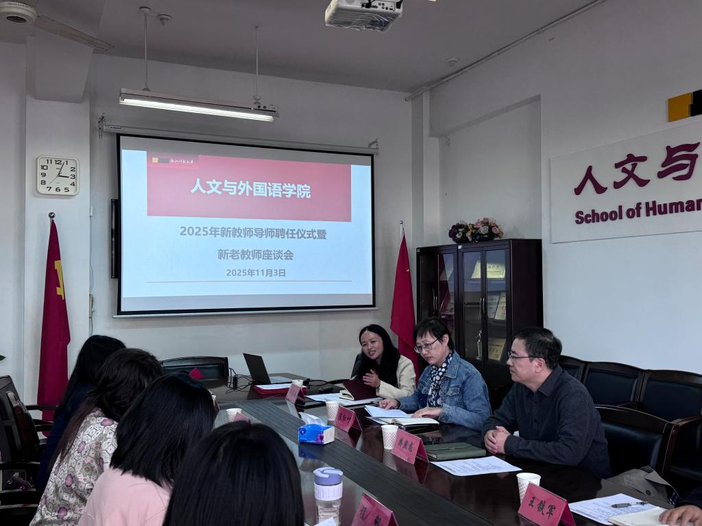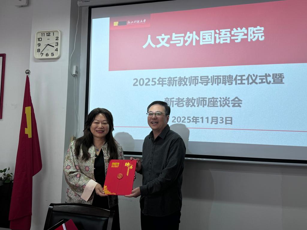 在导师聘任仪式上,叶晗、祝敏、施麟麒、杨瑞四位教师受聘为新教师导师。导师代表叶晗在发言中表示,作为导师,将努力成为新教师“教学上的引路人”“科研上的同行者”“生活上的知心友”。新教师代表黄露娜表达了对学院和导师的感谢,并承诺将以饱满热情投入工作,不负期望。