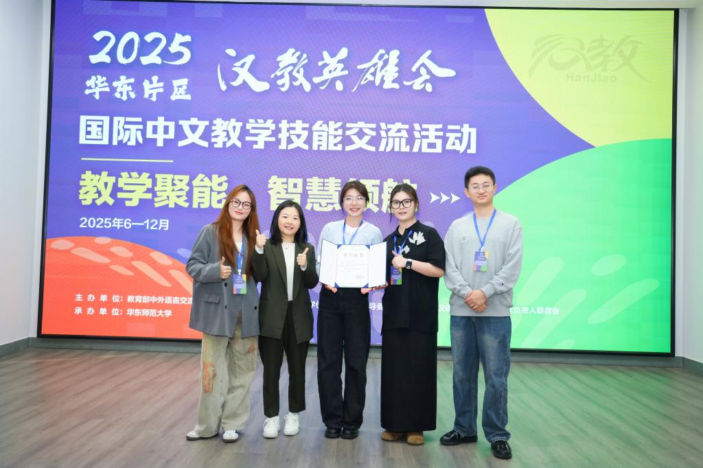 日前,2025“汉教英雄会”华东片区国际中文教学技能交流活动举行,我校402永利集团研究生团队获“最佳教学创意团队”称号。